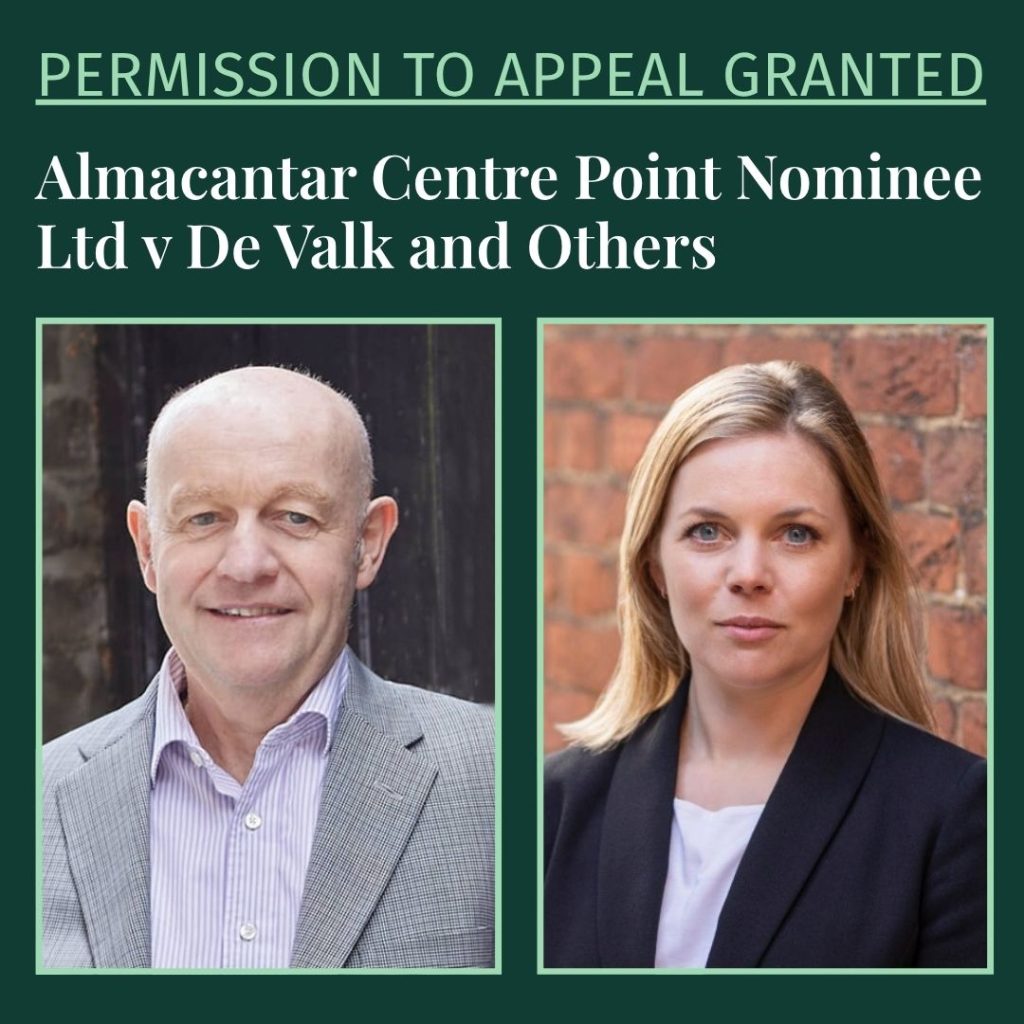 Martin Hutchings KC and Harriet Holmes, instructed by Bryan Cave Leighton Paisner LLP, on behalf of their landlord client, Almacantar, have secured permission to appeal from the decision of the Upper Tribunal (Lands Chamber) to the Court of Appeal in case of Almacantar Centre Point Nominee Ltd v De Valk and Others [2025] UKUT 298 (LC).