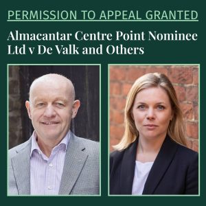 Permission to appeal to the Court of Appeal has been granted in: Almacantar Centre Point Nominee Ltd v De Valk and Others